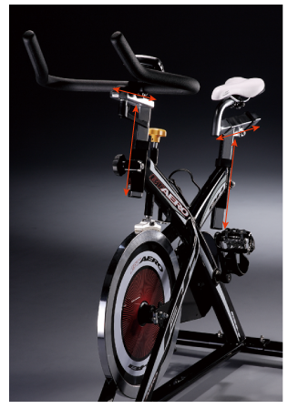 | 飛輪車把手與坐墊均可上下、前後微調,更附刻度指示,方便套用不同身材尺寸 | ||||||||